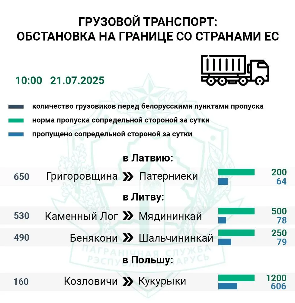 Латвийское направление не радует: в Патерниеки (Григоровщина) скапливается 650 грузовиков, при этом пропущено лишь 28% от нормы.