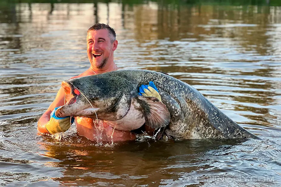 На этот раз фарт был на стороне Кати: ей удалось вытащить сома длиной 2,25 метра – и это больше, чем рекорд её мужа.