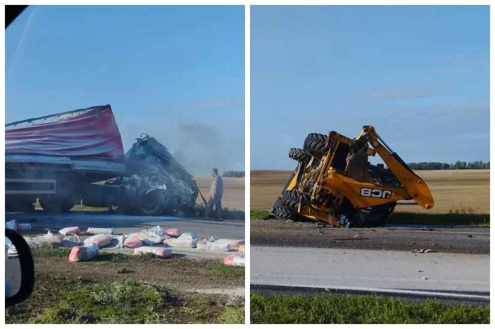 Позже стало известно, что недалеко от съезда на аэропорт водитель фуры отвлёкся и врезался в погрузчик. От удара фура перевернулась и заняла две полосы, рассыпав перевозимый груз. Некоторое время на месте аварии поднимался дым.