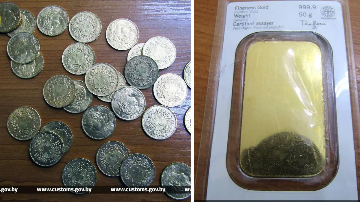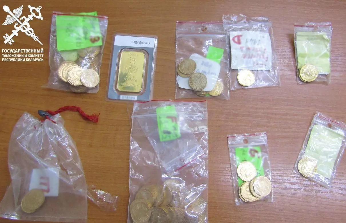 Гражданка Франции ехала рейсовым автобусом «Вильнюс-Гомель» и, выбрав зелёный коридор, дала понять, что никаких «лишних» вещей при ней нет. Но таможенники решили проверить багаж внимательнее. В чемодане обнаружились 84 золотые монеты разных лет и номиналов, сделанные во Франции, Италии и Швейцарии, а также слиток весом 50 граммов. Всё вместе – почти 600 граммов золота.