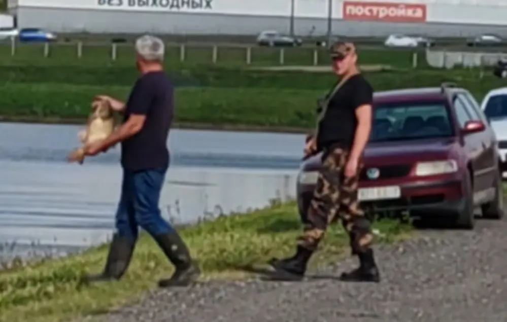 В итоге приехали инспекторы охраны природы с автоматами и стали проверять всех рыбаков на этом водоёме. На видео попало, как большую рыбину заставили отпускать, а некоторых рыбаков вовсе повели к УАЗику, видимо, накажут штрафом.
