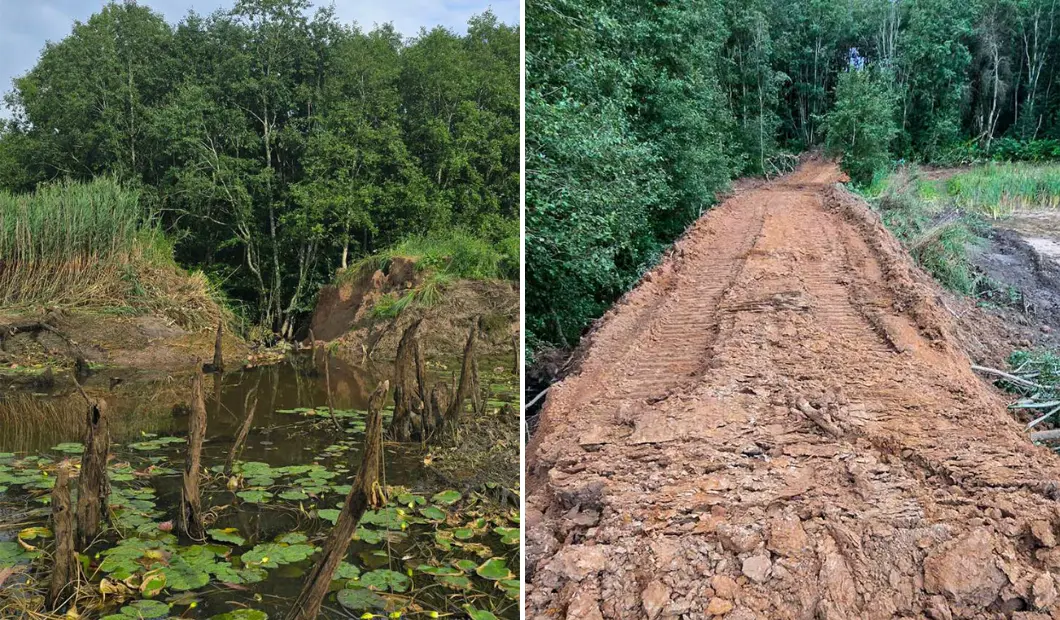 На днях в соцсетях и некоторых медиа появилось сообщение: дамбу на озере Кострицкое восстановили. Появились и свежие фото – свежевырытая земляная полоса, следы трактора, обочины из веток. Работала техника Лепельского ПМС, вызванная по просьбе лесничего Вадима Крицкого. Восстановление провели 1 августа.