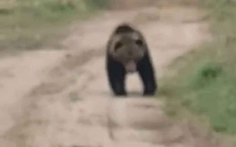 Медведь медленно шёл по дороге, что-то вынюхивая на ней. Было заметно, что он прихрамывает. Судя по видео, медведь не сразу заметил, что в тракторе человек. Только приблизившись на пару десятков метров, он заметил шевеление тракториста, снимающего на камеру, развернулся, и дал дёру в лес.