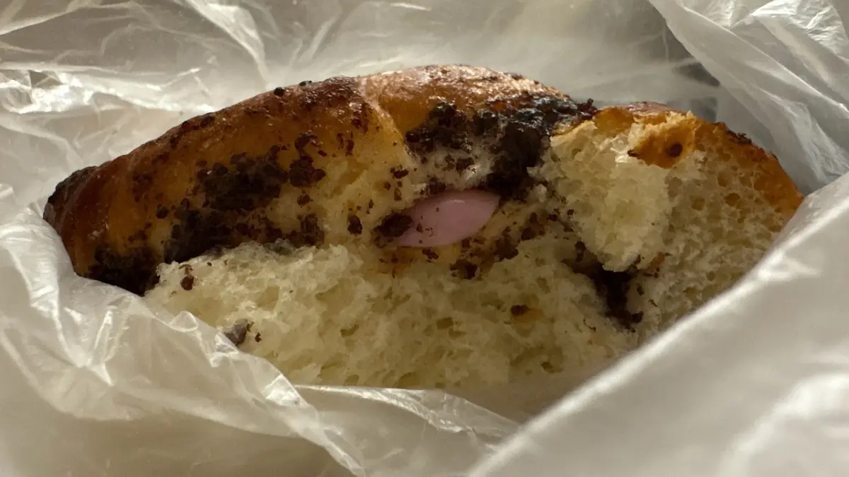 «Вот такая начинка попалась в булочке из магазина. В требованиях к личной гигиене работников (в постановлении Министерства здравоохранения РБ) не удалось найти что-то, где будет сказано о перчатках или хотя бы подстриженных ногтях… Но ноготь в булке явно не норма. Как поступить в данной ситуации?», — спросила девушка в группе по защите прав потребителей.