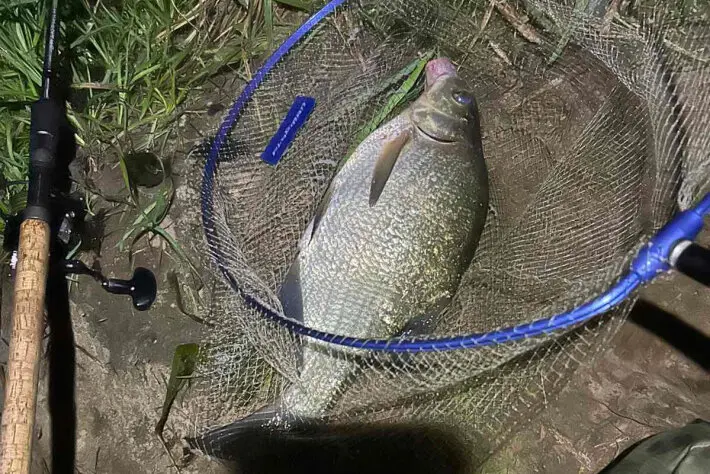 Выбрал точку, где снасть держалась, и с 17:00 до 23:00 ловились только редкие густерки. Потом, ближе к полуночи, зашли четыре лещика. Один сошёл, три удалось вытащить — и на этом клёв закончился. Утром с 5 до 10 часов река замолчала, словно «в ведро», ни единой поклёвки. Дневные рыбалки, похоже, сейчас у всех идут впустую.