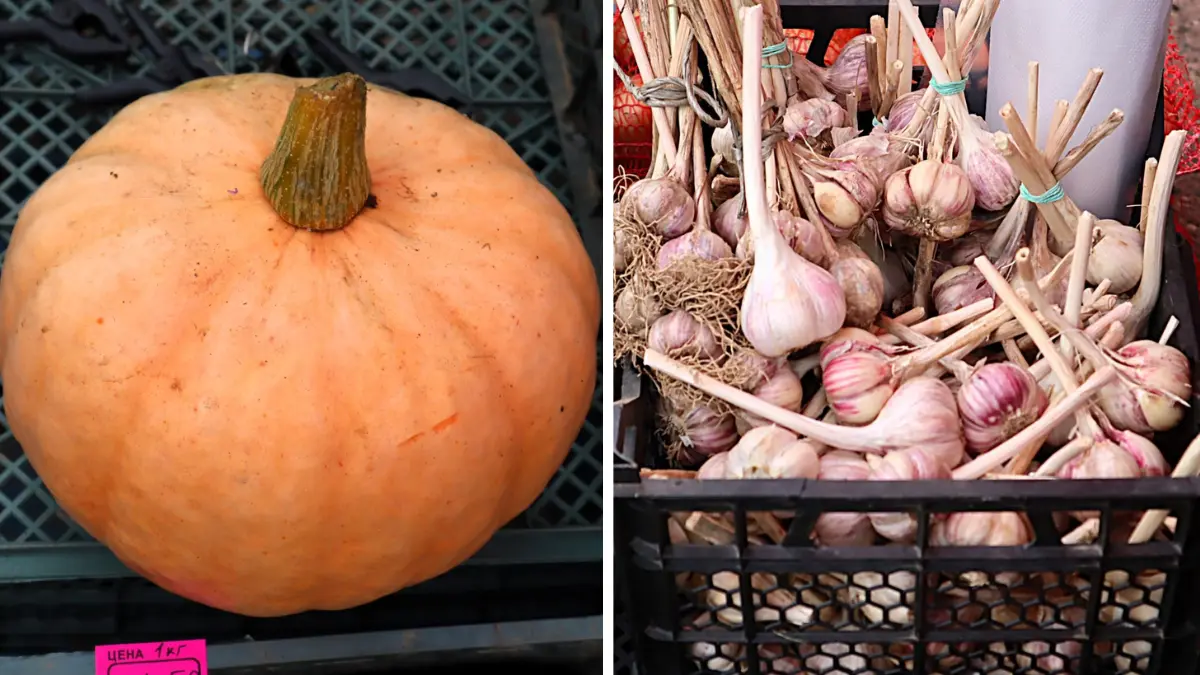 Особая гордость – тыквы по 10 рублей. «Большая и сладкая!» – объясняет продавщица.
