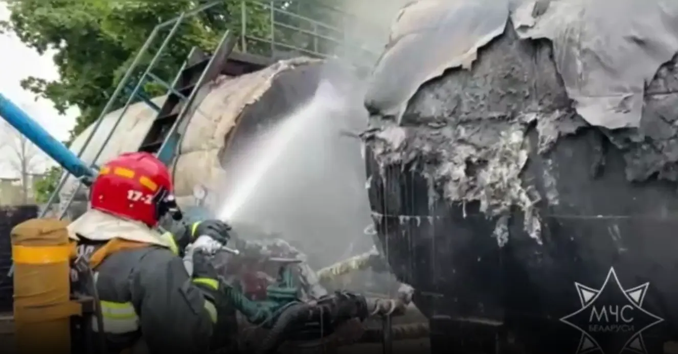 Спасатели проливают территорию водой и пеной, чтобы локализовать огонь и не допустить распространения на соседние объекты.
