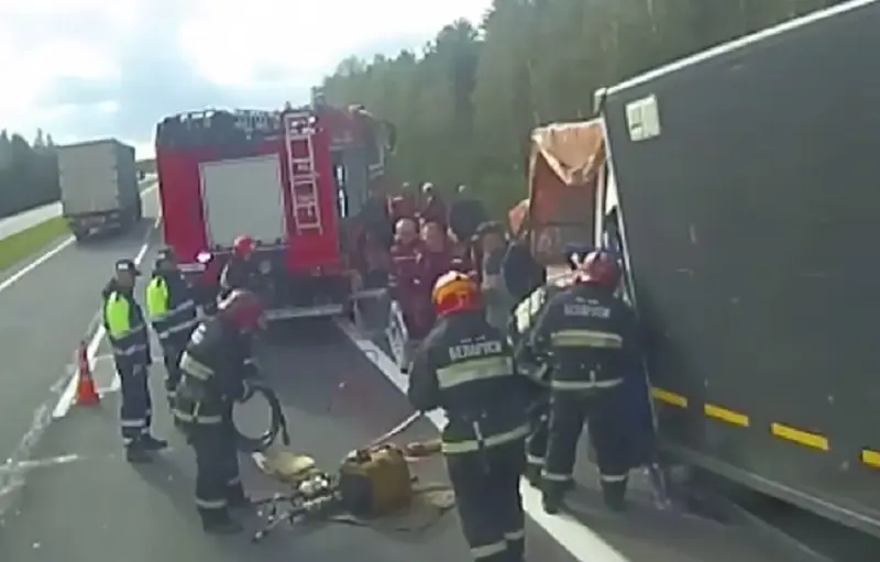 В машину дорожников въехал 27-летний житель Минска за рулём грузовика Iveco на 186-м км трассы М1. По предварительной информации, он уснул за рулем и поэтому столкнулся с попутным автомобилем дорожной службы ГАЗ.