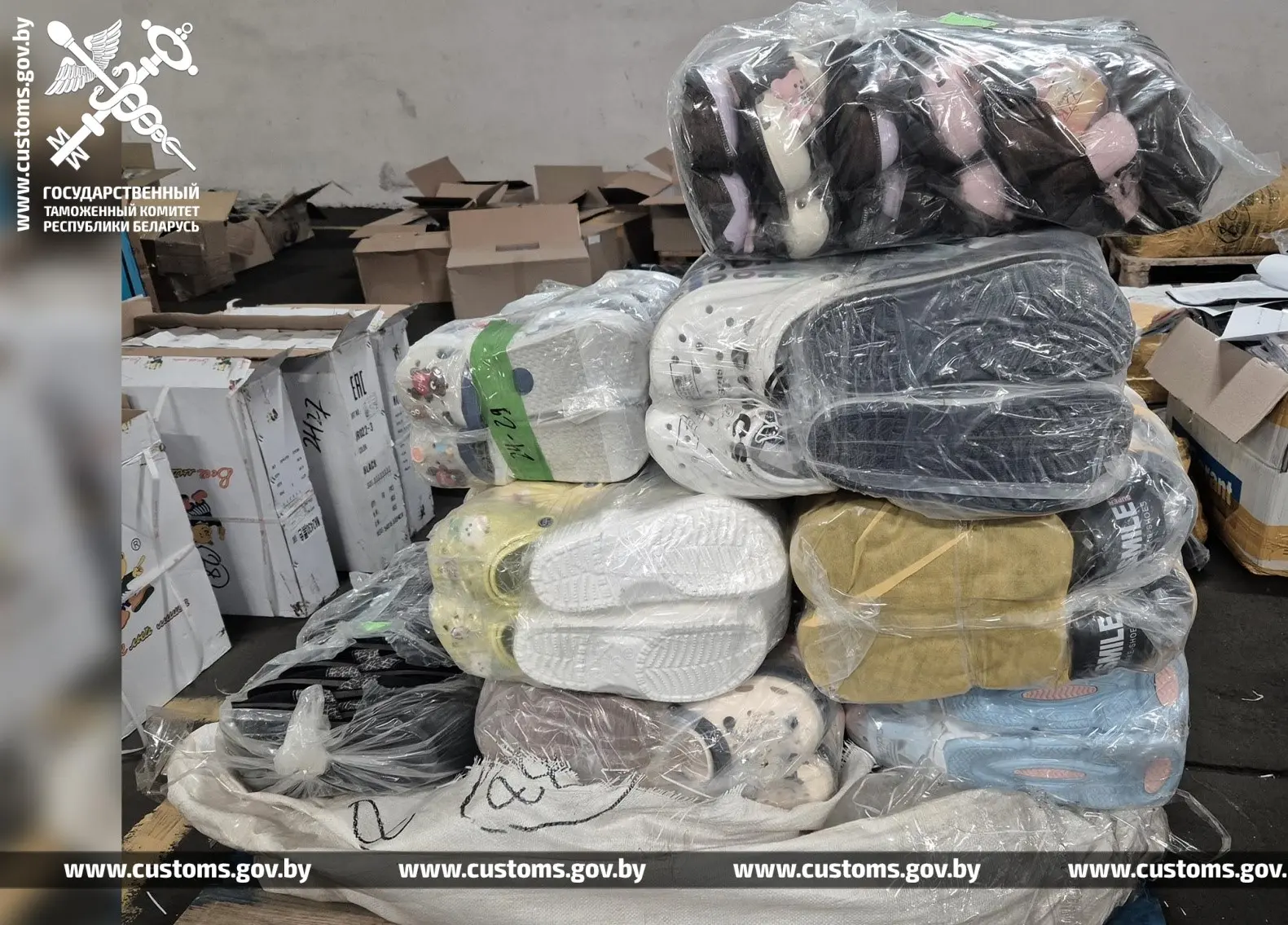 Документы, представленные для контроля, оказались недействительными. В грузовом отсеке – около 11 тысяч единиц товара, по большей части массового потребительского сегмента. По фото, которые распространила таможня, видно: одежда и обувь явно не премиум-класса – типичный «китай» для региональных рынков.