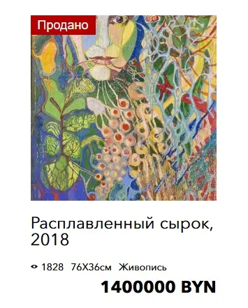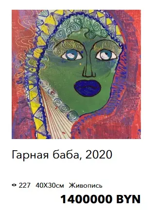На другом международном сайте по продаже картин есть её произведения, но цены ниже, от 170 до 1670 евро. Тем временем, на artcenter есть ещё одна картина Вероники Татаринович более чем за 400 тысяч евро. Она называется «Гарная баба», создана в 2020 году.