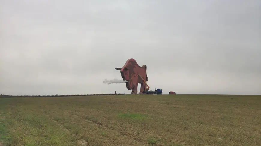 Символ Брестской области давно стал туристической визиткой, а теперь его решили сделать ещё зрелищнее. Уже в апреле зубр будет «дышать» паром на 5,5 метров под углом 45 градусов — раз в час. Позже разработчики обещают добавить звук — настоящий звериный рев.