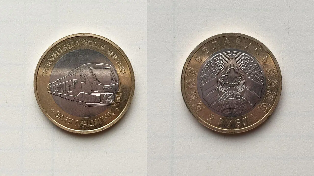 Житель Минска Алексей рассказал, что получил необычную монету прямо в кофейне, когда расплачивался за кофе. Сначала он не придал этому значения, но дома заметил, что два рубля выглядят совсем не как обычные — на них изображён поезд.
