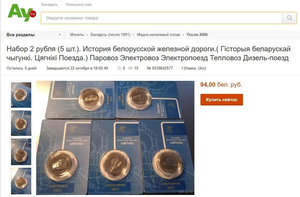 Оказалось, что это редкая памятная монета из серии «Гісторыя беларускай чыгункі. Цягнікі». Летом Нацбанк продавал её по 11 рублей, а сейчас купить такую уже негде. На сайте «Белнумизматики» цена взлетела до 45 рублей, а на интернет-аукционах коллекцию серии продают почти за сотню. То есть редкая монета стоит в двадцать раз больше номинала, пишет myfin.by.