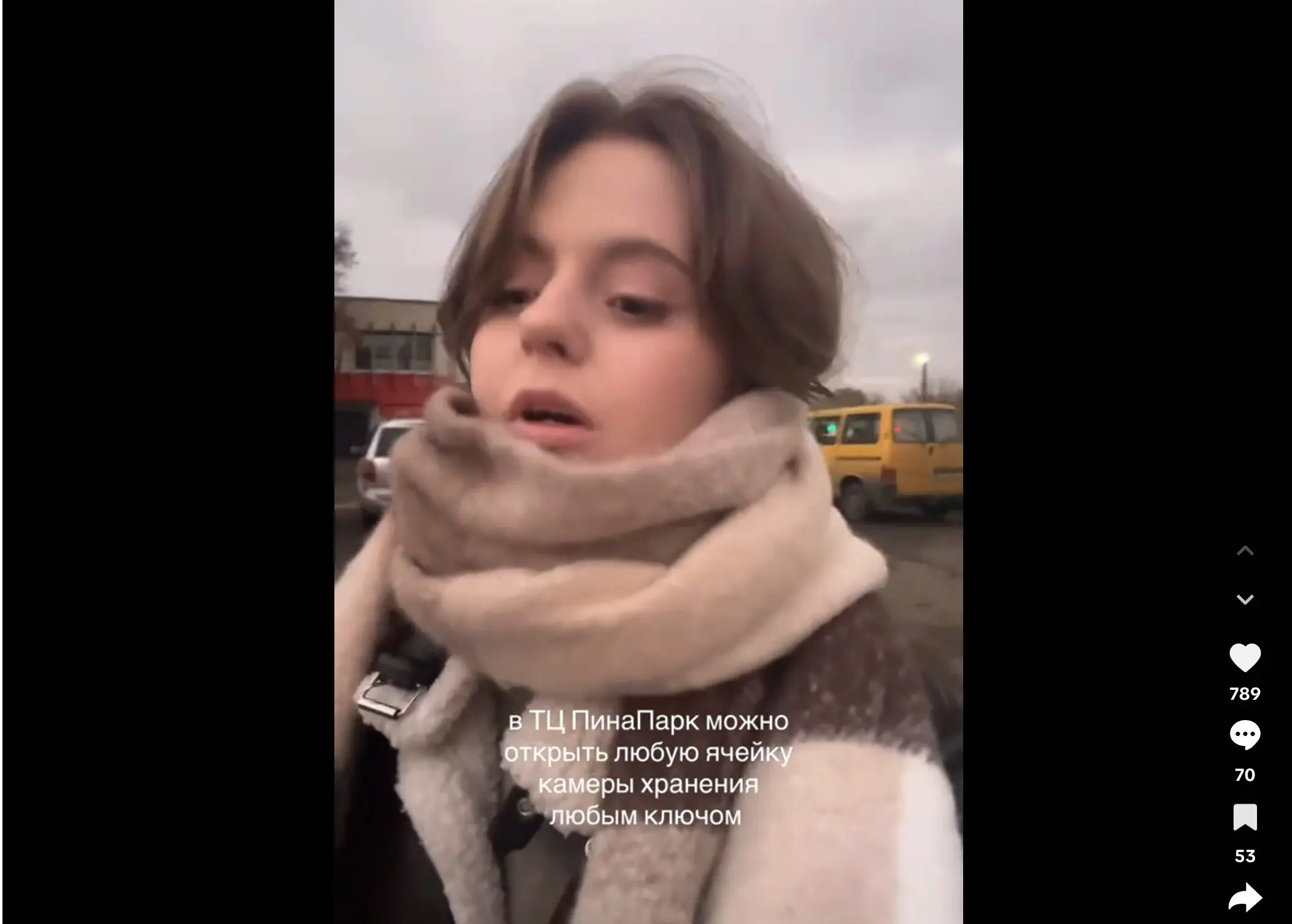 Посетительница торгового центра «ПинаПарк» сняла ролик в TikTok, как она оставила куртку и шарф в ячейке камеры хранения, но не запомнила номер. Когда вернулась, ключ под номером 21 открыл ячейку с чужими вещами.