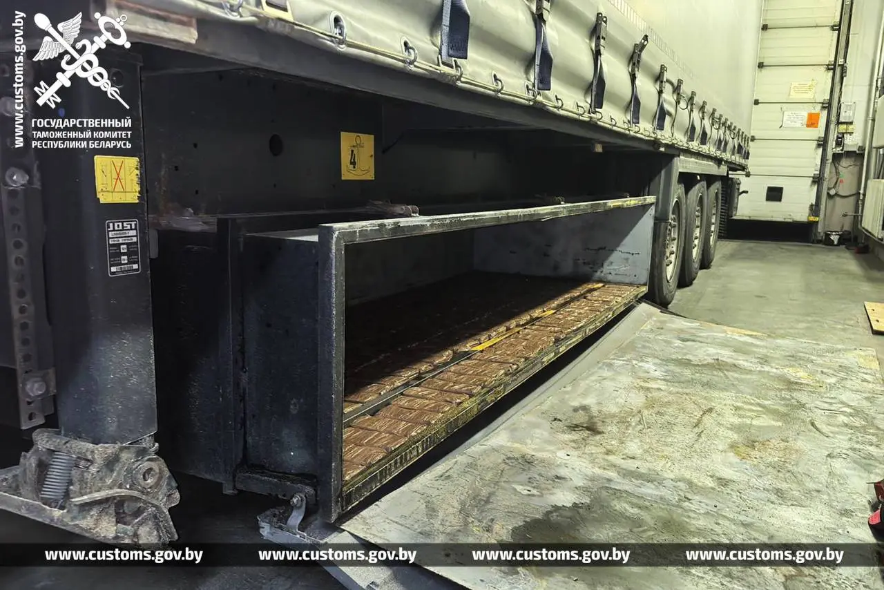 Брестские таможенники вместе с российскими коллегами остановили фуру, которая шла из Польши с алкоголем. Машину отправили на повторную проверку, и сканеры показали странное затемнение внизу полуприцепа будто внутри что-то спрятано. Дальше стало ясно, что это не просто техническая деталь, а тщательно подготовленные тайники. Направили на досмотр, и сканеры сразу показали внизу полуприцепа плотное затемнение.