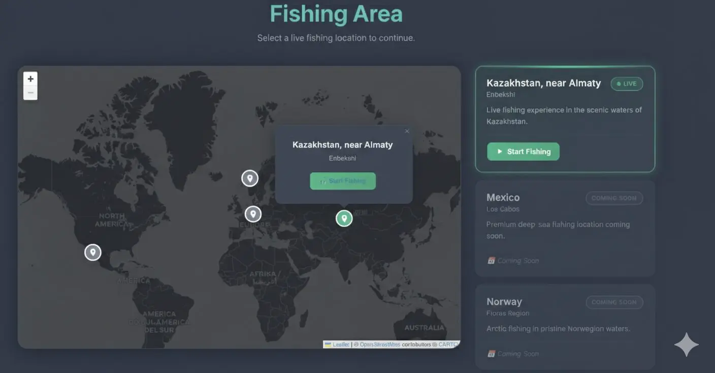 Пока сервис работает в тестовом режиме. Доступна только одна локация — озеро рядом с Алма-Атой. Но разработчики планируют расширять географию проекта. В планах Италия, норвежские фьорды и даже побережье Мексики. Рыбалка без перелётов, виз и снастей, которые вечно не помещаются в багажник.