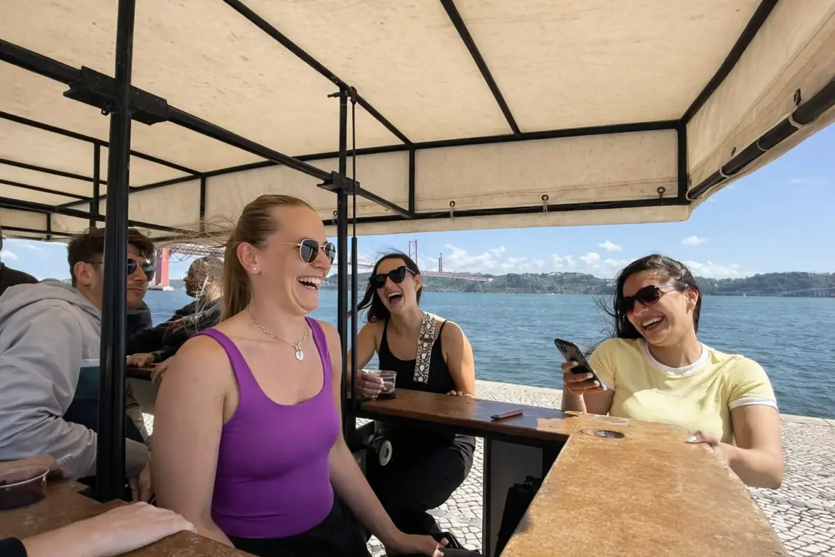 Маршрут проходит по набережной района Белен. Это одна из самых удобных и открытых частей города, где широкие дорожки и хороший обзор на реку Тежу. По пути видны известные лиссабонские достопримечательности и мост 25 апреля. Сам формат устроен так, что участники крутят педали вместе, а движение идёт в спокойном темпе.