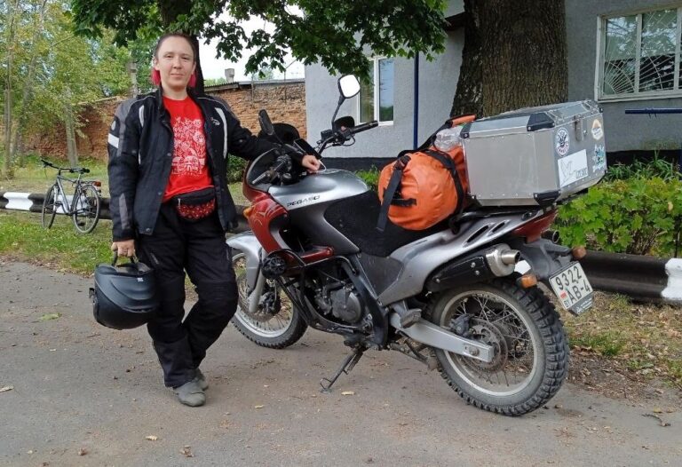 Юлия из Гродно совместила два своих увлечения – путешествия и мотоцикл – и свободное время проводит в поездках по Беларуси и не только. В августе 2024 года предприняла две попытки проехать по Полесью, что, так сказать, с головой окунуться в полесскую экзотику. Но путешествие завершилось досрочно из-за поломки мотоцикла. Но наша героиня не отчаялась и отремонтировав «коня», отправилась в путь. На полпути мы поймали Юлю в Берёзе и поговорили об особенностях познания мира из седла байка.